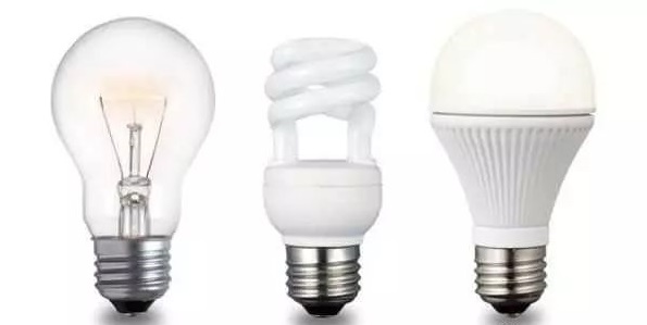 白(bái)熾燈(左)節能(néng)燈(中)LED燈(右)