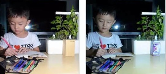 高(gāo)質量的LED燈(左)和低(dī)質量的LED燈(右)