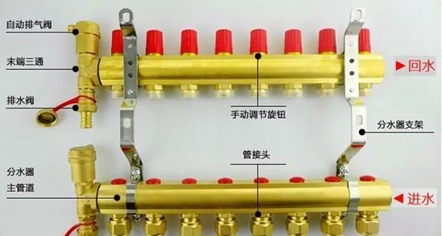 分集水(shuǐ)器(qì)由分水(shuǐ)器(qì)和集水(shuǐ)器(qì)組成,分水(shuǐ)器(qì)接供水(shuǐ),集水(shuǐ)器(qì)接回水(shuǐ),每對接口之間用整根水(shuǐ)管相(xiàng)連,就(jiù)是一(yī)個(gè)回路(lù)。
